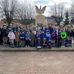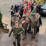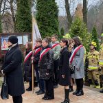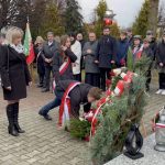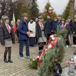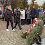 Pod nowo odsłoniętym i poświęconym przez księdza proboszcza Dariusza Bajwoluka pomnikiem upamiętniającym bohaterów walczących o wolność Polski złożone zostały wiązanki kwiatów.