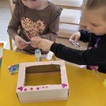 Z materiałów przyniesionych z domu tworzyły różnego rodzaju zabawki, konstrukcje, rakiety, domki dla lalek i wiele, wiele innych ciekawych pomysłów.